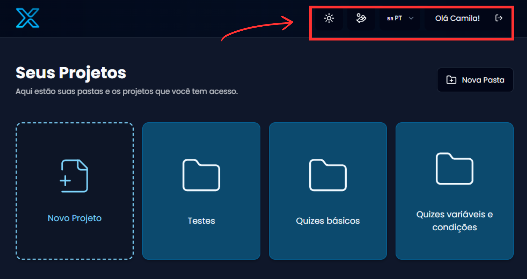 O ícone de sol serve para mudar o visual da plataforma. Clique uma vez e o tema muda de claro para escuro, ou vice-versa, conforme sua preferência. Ideal para trabalhar de forma mais confortável, principalmente se você passa muito tempo no computador.Botão de assinatura