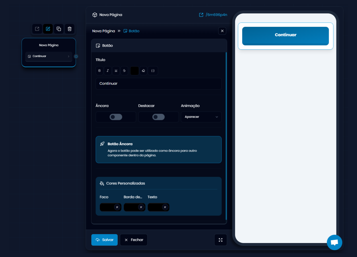 - Quando ativado, transforma o botão em um atalho para outro componente da página.