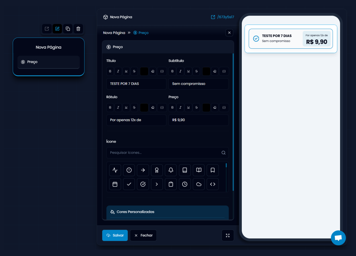 - Campo de valor com destaque para o preço (ex: “R$ 9,90”).