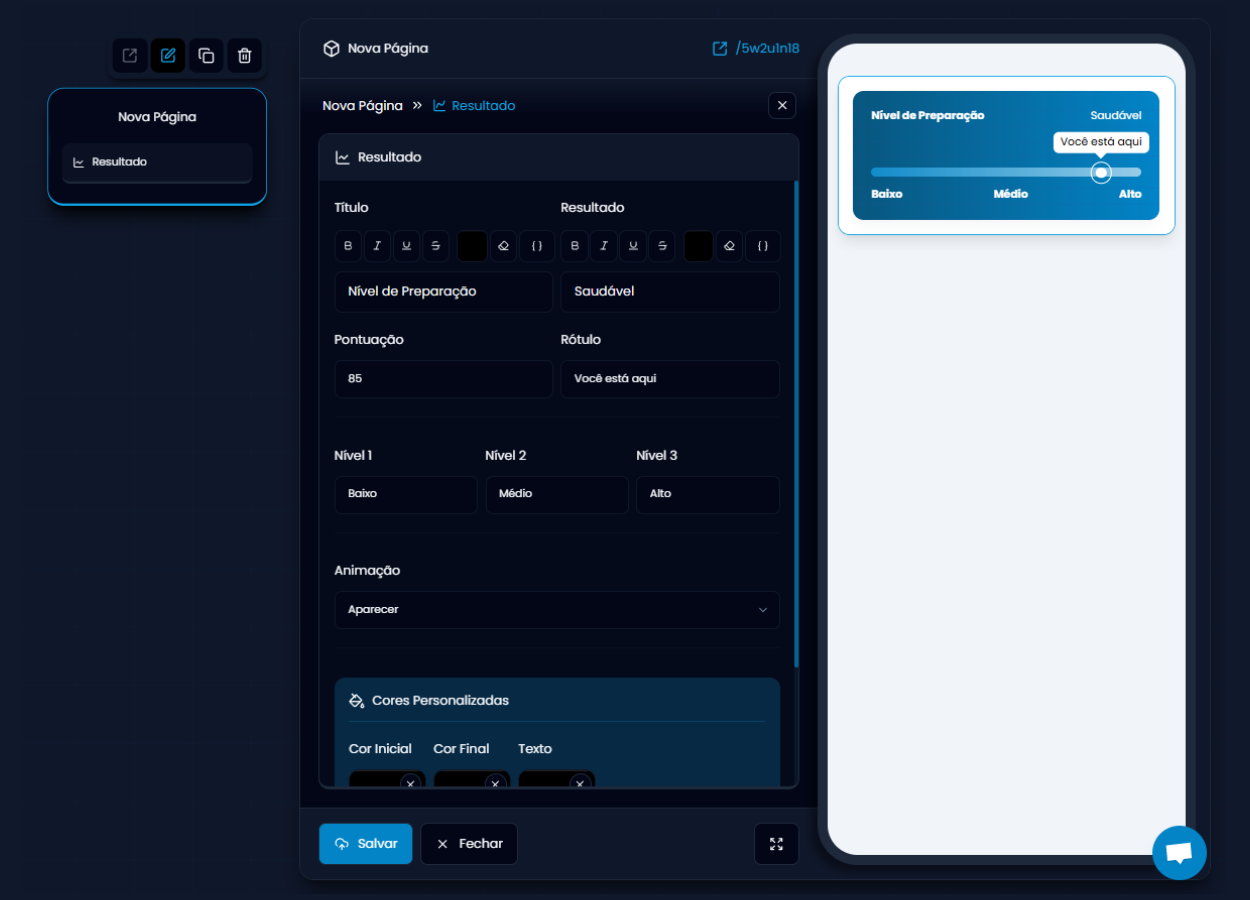- Título (ex: “Nível de Preparação”).