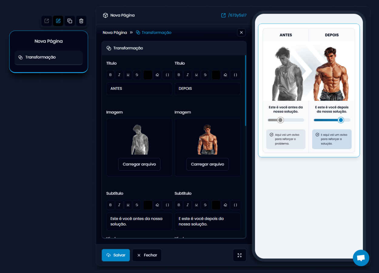 - Personalize o título de cada lado (ex: “Antes” e “Depois”).