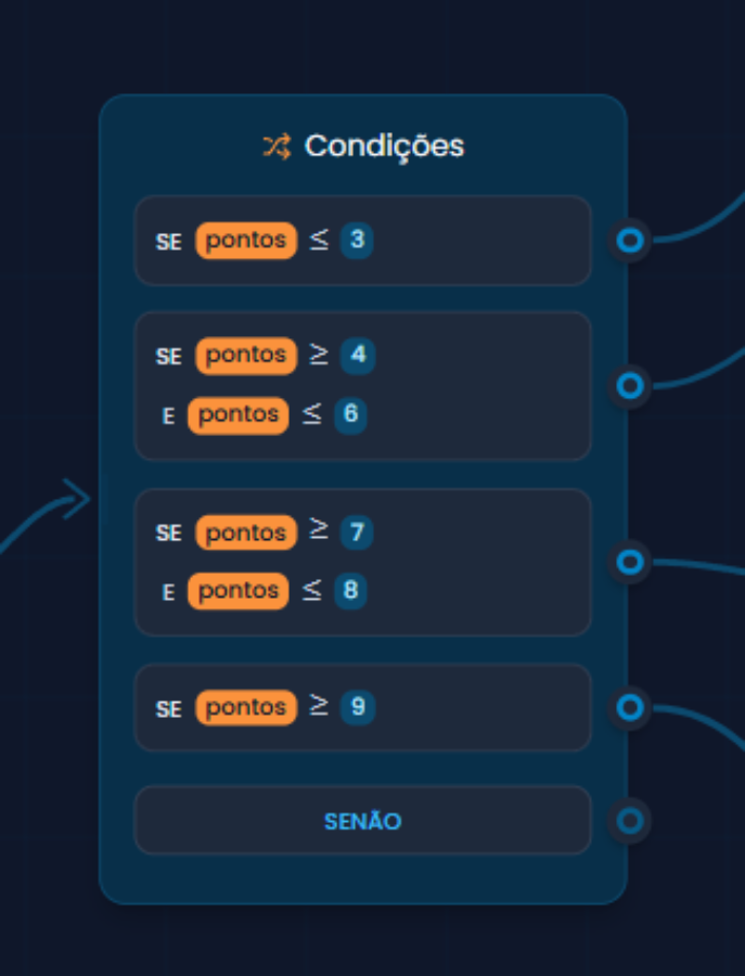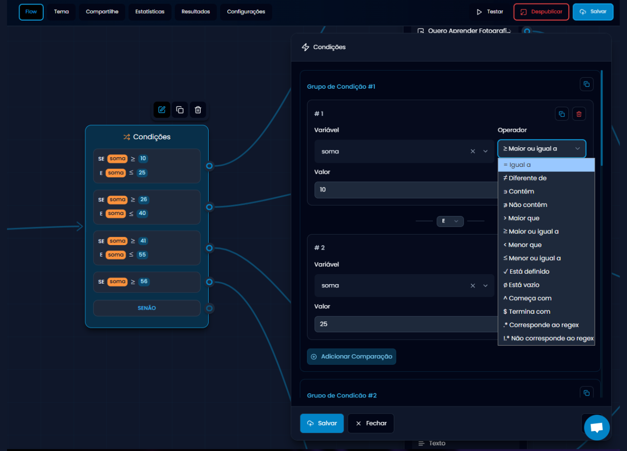 - Operador: a lógica que será usada (igual, maior que, menor ou igual a, etc.)