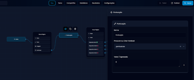 - Se quiser usar um sistema de pontos, comece com o valor 0 e vá somando depois.